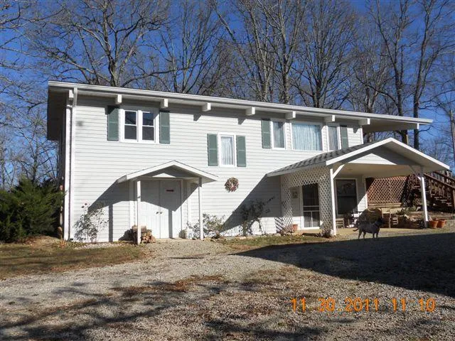 It's like living in a park! Pretty shaded yard provides the setting for this 2 bedroom (could easily be 3), 2 bath home; walk in at the lower level or upper level. Open floor plan, lots of natural lighting, & a pretty kitchen with range & frig included.. Your favorite spot will be the large back porch, where you can watch the deer & turkey. C/LP or wood heating; C/A, + ventless LP heater as backup. $124,900