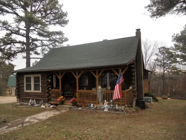 Large Log Cabin Home 2103+ sq. ft. with five bedrooms, two full baths, full finished walk-out basement, large sun room with jacuzzi tub and lot's of storage, large family room in the basement. This home has a 3 car detached 26x50 garage with concrete floors and electric above this garage is a two bedroom, one bath apartment with it's own septic, water and front porch. Home has a neat chicken house, large pond and comes with all the appliances. Listed three different ways.