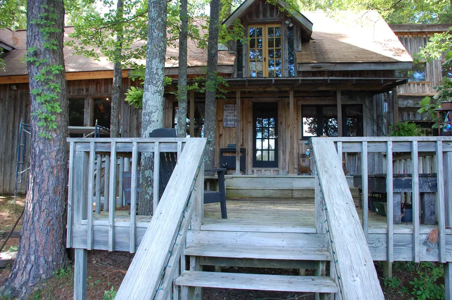 Unique 5BR/3BA rustic home sits on large private lake with 60 m/l secluded, wooded acres. Home features grand living room with native rock fireplace overlooking lake. Wood floors and wood ceiling treatments feature some re-purposed wood. Two wooden decks feature stairs to dock area and fire pit. Upper floor features office and rec room area. Two of the bathrooms feature clawfoot tubs. Horse barn features 5-6 stalls, tack area and corrals. Dbl. detached garage, dog kennel building, and storage shed. You won't see another like this anytime soon!