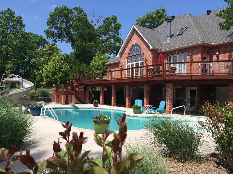 EXQUISITE! Brick and Stone 2 Story Contemporary Home on a Picturesque and Private 9.29 Acres - Main Floor Boasts Ideal Kitchen including Large Island with Breakfast Bar, Double Oven, Pull Outs, Custom Cabinetry, French Doors to Deck and Table Area to Enjoy Simple Snacks or Meals AND a Double Sided Fireplace into Living Room - Separate Formal Dining Room - Luxurious Master Suite with Walk-In Closet, Walk-In Shower, Garden Tub and Double Vanity - Vaulted Ceilings, Hardwood Floors, Custom Windows, Crown Molding and Large Arched Doorways Throughout - Custom Built Wrought Iron and Hardwood Staircase to Upstairs Loft, 2 Bedrooms, Full Bathroom and Den/Study - Fully Finished Walkout Lower Level has 2 Bedrooms, 2 Full Bathrooms, Family Room, Rec Room and Wet Bar all Leading to the Patio & Inground Pool with Hot Tub, Diving Board and Fun Slide - Main Floor Deck Expands the Outdoor Living to Enjoy the Beautiful Landscaping, Panoramic Views, Butterflies, Birds and Mother Nature Bounding About Your Private 10 Acres - 3 Car Attached Garage and 3 Car Detached Garage which includes Upstairs Living Quarters - This One-of-a-Kind Home is Only 7 Miles from Town and Located in a Highly Desirable Area - The Only Thing Left To Say is TRES MAGNIFIQUE!