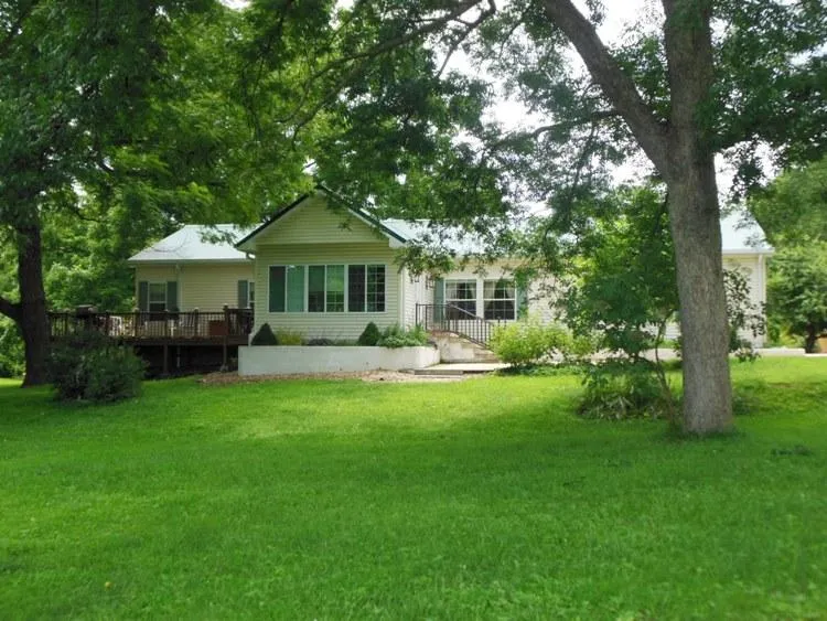 Gorgeous top-of-the-line 3 bedroom home on 20 fenced and cross-fenced acres. The land is mostly in grass, hayable, and comes complete with live water, including a spring-fed creek and an artesian well. The 2444 sq ft home features 9' ceilings, bamboo flooring, and many, many extras! Open floor plan with spacious 16x26 living room, 14x15 kitchen with center island/bar, loads of cabinet and counter space, and a butler's pantry. Dining room with tray ceiling and French doors opening onto the sunroom. Master bedroom with 9x12 sitting room. Master bath with whirlpool tub and separate shower. All 3 bedrooms are large and have walk- in closets. 14x15 family room. Inviting deck overlooking the creek, pond, fire-pit and screened gazebo. Detached 2 car garage with bonus room. Underground electric and water to the 32x36 main barn. Excellent machine shed/shop with 200 amp service and a 15x30 in...