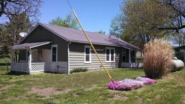 14 acres m/l includes nice productive pasture, pond, perimeter and cross fencing. 23x48 metal barn, 2 room storage building on foundation plus a portable storage building, 2 car garage includes lots of extra space for storage or workshop; 6 apple trees.The two bedroom house has hardwood floors,lots of storage spaces,great kitchen,CH/A & LP heater backup, also a chicken coop!