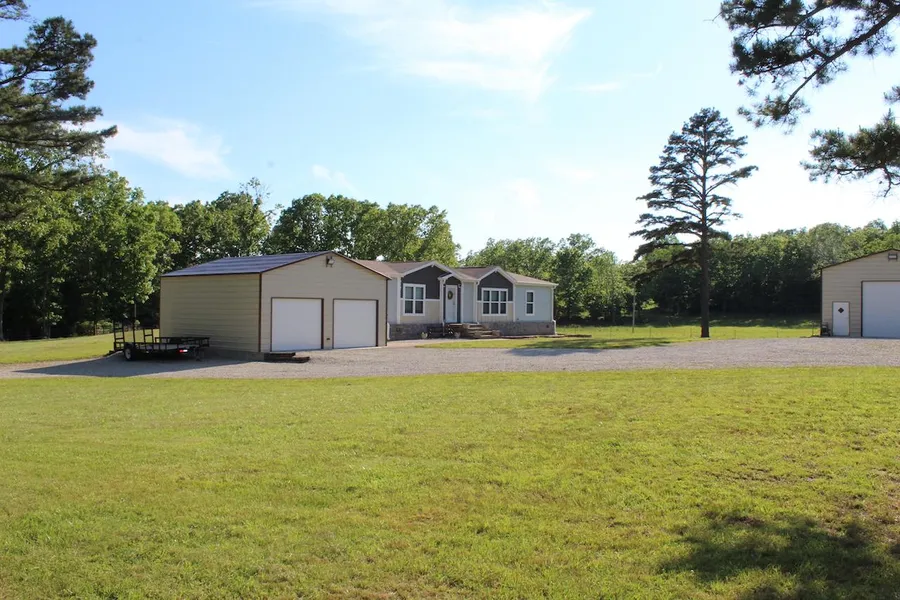 This Beautiful 1680 sqft, Newer Manufactured Home offers a kitchen/dining combo, breakfast bar with sink, refrigerator, dishwasher, microwave, lots of cabinet space and pantry. An open concept main living space, 3 bedrooms and 2 baths. The master bedroom features a full bath with walk-in shower. The property features a 25x35 shop and a 2 car detached garage. The 16 acres are mostly cleared with some wooded, fenced with piped corners!