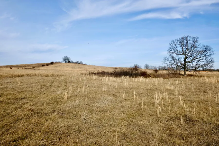 This 28 Acres +/- This farm has gently rolling terrain, 99% open hay field, perimeter fenced, drilled well with certificate - tested with generator, existing metal frame for a building with pretty hilltop views.