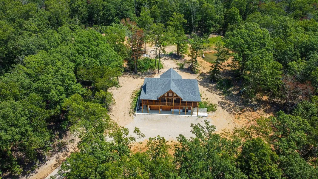 This new cabin is a bit larger and includes plans for finishing with a list of needed supplies, 3 Bedrooms and 3 baths with plenty of windows for natural light. Pantry/Utility room directly off Kitchen for easy access and storage. Floor-to-ceiling fireplace option in Great room and Basement. Enjoy Ozarks country living on the wrap-around deck complete with optional outdoor fireplace, two planned Screened Porch areas, one off the Kitchen and the other off the master bedroom. Electrical, septic and plumbing to date; Wi-Fi Tower offering high speed internet; Fence and Electronic Security Gate and Private Road to Home.