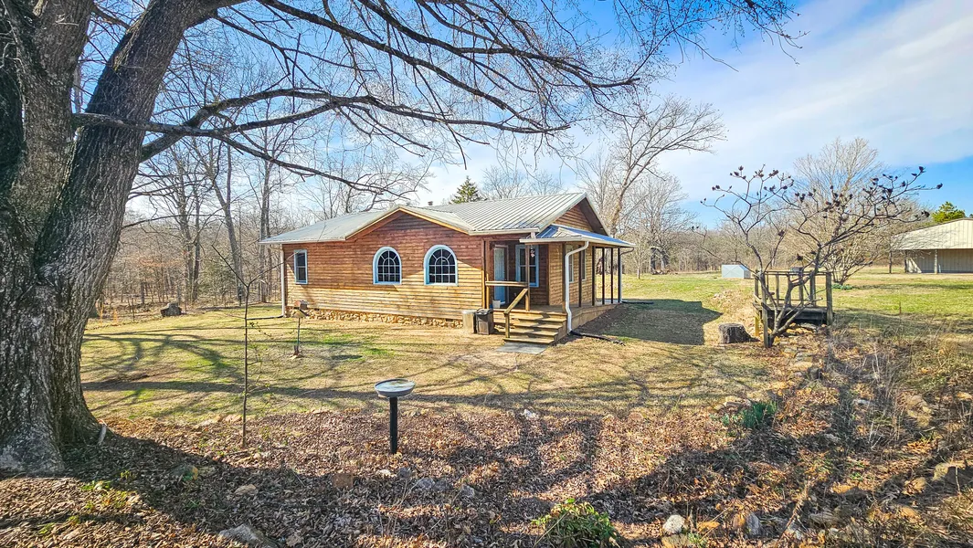 Home and Land For Sale in Howell County! Located northwest of West Plains sits a 2 bedroom, 1 bathroom home on 42.8 acres with live water, and connects to Mark Twain National Forest! The home is filled with character and rustic charm with its wood floors, cabinets and built-ins, large arched windows, and Fisher wood stove. It has an open concept, split floor plan, a beautifully updated bathroom, and a laundry/mud room that opens to the back porch. It has a fenced in yard, and there is a large shop with concrete floors, electric and two overhead doors, and a wood barn. The spring fed creek runs through the property and can be seen from the house. Some land has been cleared recently, a food plot has been added, and deer and turkey are seen regularly! The property has been surveyed and connects to the Mark Twain National Forest. The land is fairly level, and has a mix of open hardwoods, bea...