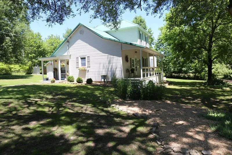 This little slice of paradise has been cut from a larger parcel and is surrounded by beautiful Ozark farmland - This older quality built farm house on an easy to maintain .62 acres was COMPLETELY remodeled in 2002 and now boasts 3 big bedrooms, 2 full bathrooms, gorgeous kitchen with breakfast area and huge walk-in pantry, front parlor, open living room to dining room, mud room with laundry - Wonderful hardwood floors and windows updated throughout, central air, vintage high ceilings and dont forget that welcoming covered front porch - You also have a matching garage with private side patio, lovely landscaping and plenty of land to enjoy your privacy - You will not believe how clean and comfortable this home looks and feels from its small town charm to big bright welcoming rooms and updated conveniences - Come take a seat in the rocker and lets sit a spell!