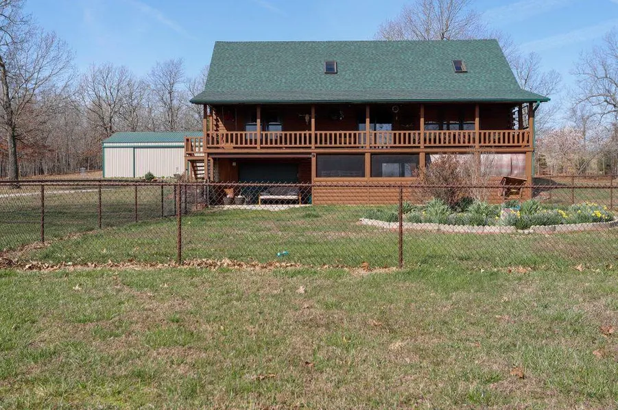Private Spring Fed Lake Front Cedar Log Home on 7 Acres Dock and Shore front pergola for Summer entertaining! Custom Cedar Log Home has an Open Concept with oak hardwood flooring, Loft Area, Finished Walkout Basement. 3 Bedrooms 2.5 Baths. Vaulted pine ceilings with skylights. Granite Countertops with Breakfast Bar, Pantry Area and Lazy Susan storage. Primary Suite with beautiful custom tile walk-in shower! Covered front and back deck with views of lake. Home has John Deere Room and detached large shop with concrete floors and electric and 2 tall doors. Chicken coop, fruit trees (2 peach, pear, apple cherry and blackberry) and established garden area with handy frost-free hydrant. Water Filtration system with reverse osmosis system.
