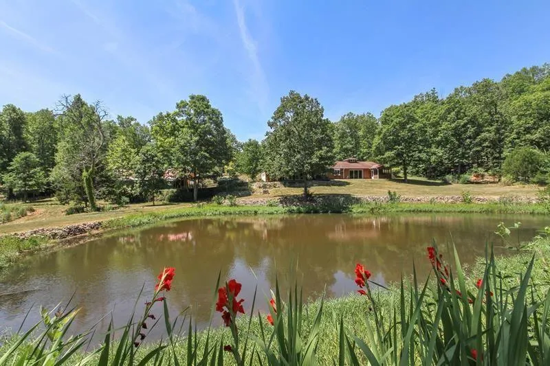 The Beautiful Spring fed Lakes have awesome fishing and are perfect for boating or swimming and this property is in the perfect spot for access to both! Ranch Style Home has Pine Siding and Beautiful Landscaping in a Private Setting with winding drive, mature trees and ponds. The home has a Wood-burning Buck stove on a custom slate pedestal in the family room, Vaulted Beamed Ceilings, Recessed Lighting, and a Stained Glass Window in the Entry Room, and other touches that make it Beautiful! Tile flooring throughout with several large coat closets for extra storage and plenty of Natural light through Large Windows, Sliding Glass Doors and a total of 9 Stained Glass Windows. The Kitchen has a separate Butlers Pantry and Appliance area, freeing up cabinet and counter space for Culinary Delights! Family room features gorgeous rock wall and a Dining Area with a wall of windows which overlooks the ponds, one of which is stocked for private fishing. The Hot Tub is set up right inside a Large Entertaining Deck which camouflages the rain storage system, perfect for keeping the hot tub full! A Spacious Primary Bedroom with His & Hers Closets and a private bath. Also has a Sitting Room with French Doors that leads to a Screened Porch with a precious Stained Glass window over the door. Wonderfully large Utility Room, a Pantry with Sink, Water Filtration System, Water Softener, Water Shut off for Shop, 200 Amp Electric on main panel, an Attic that could be a game room or additional storage when finished, an Additional Finished Room for storage, another Large Unfinished Room, and a 2 car garage round out the amenities within the home.