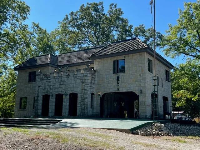 Beauty reigns in the Ozark Mountains.... and this one of a kind castle nestled in the hills awaits its new steward. Guarded by wrought iron gates, the long winding driveway brings you to this custom built 3 bedroom, 2.5 bath regal home. featuring extensive stone work, front and back balconies , full unfinished walk out basement. Relax beside the ever vigilant gargoyles that guard your home as you take in the extensive grounds. The estate, 36 acres of green rolling hills boast large beautiful trees, two ponds, large lake and bountiful wildlife!! Make this Once Upon a Time home your own Happily Ever After today !!!! Would be a great family home or even a Air-bnb!!