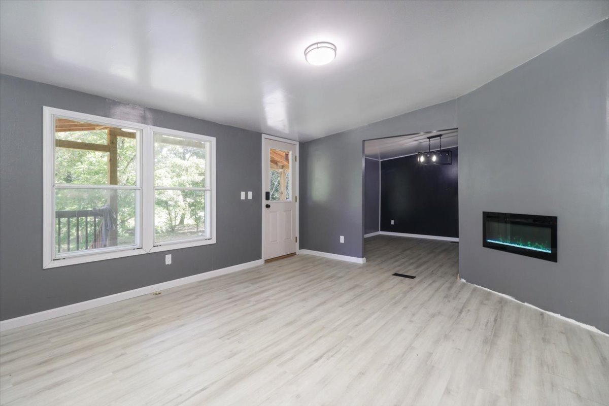 Entertain guests or unwind in the cozy living area, complete with a brand new fireplace, perfect for chilly evenings spent indoors. Fresh sheetrock, flooring, and updated electrical fixtures throughout the home add to the allure, providing a seamless blend of modern convenience and timeless charm.