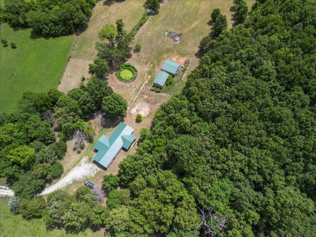 In addition to the main residence, a large shop building and storage shed provide ample room for storage, hobbies, or even a home workshop.
