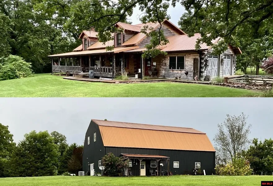 This stunning custom-built primitive log home sits on approximately 60 acres and offers rustic charm with modern comforts. The main home features f bedrooms, 3 baths, and a loft, with roughly 3,500 sq. ft. of living space. Soaring 20-foot open beam ceilings and a 20x30 wood beam great room create an inviting & spacious atmosphere. The kitchen is designed with custom cabinets, a walk-in pantry, breakfast bar, and newer appliances, while the full basement and oversized 2-car garage provide plenty of storage. A 10-foot wraparound porch is perfect for enjoying the serene surroundings, and the layout allows for additional bedrooms if desired. A second residence, a 3 bedroom, 2 bath barndominium with 2,400 sq. ft. (per appraisal), provides flexible living options—ideal for guests, extended family, or rental income. The property also includes a 2,400 sq. ft. shop with workshop, a hay barn, alpa...