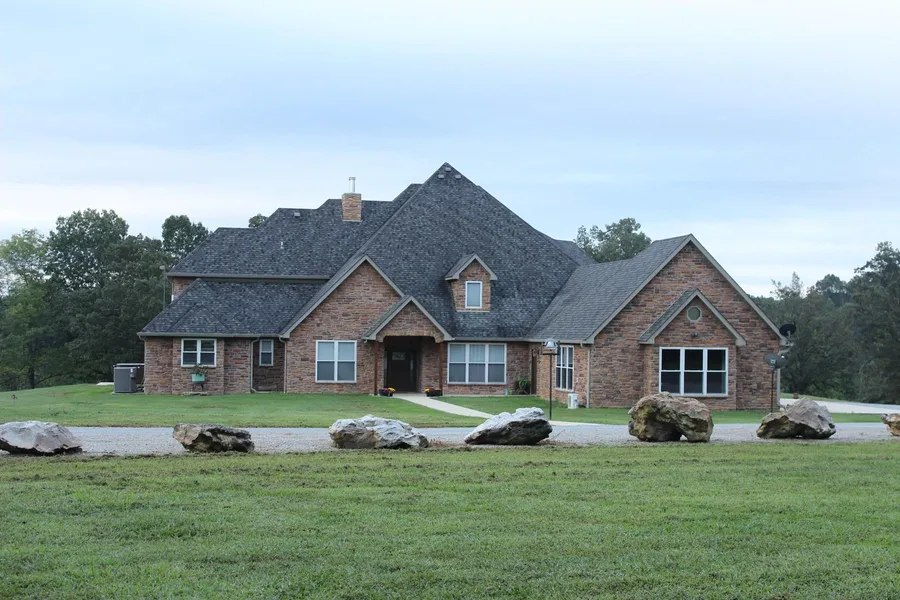 Executive-Style Stone Home with Acreage for sale in the Missouri Ozarks.