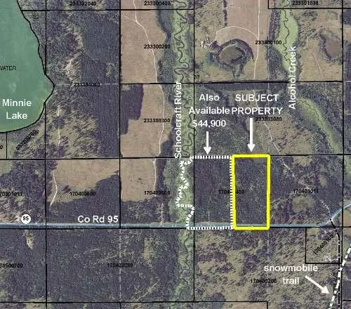 Approximately 19 acres right on Co Rd 95 north of Lake George. Near the Schoolcraft River, Minnie Lake, and Alcohol Creek. Snowmobile trail to the east/southeast. Within Paul Bunyan State Forest. Primarily all level upland with a small spot of wetland in the northeast corner. Excellent site for camping or hunting. Public land adjacent to the north is in Schoolcraft Township/Game Refuge (no firearm hunting). Contact Hubbard County or Lake George Township for any building restrictions. Additional land is also available (MLS# 201647).