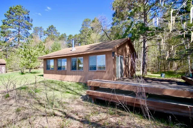 Private cabin on north shore of beautiful Midge Lake. The cabin is just feet from the level sandy lakeshore. Panoramic windows bring the lake to you.