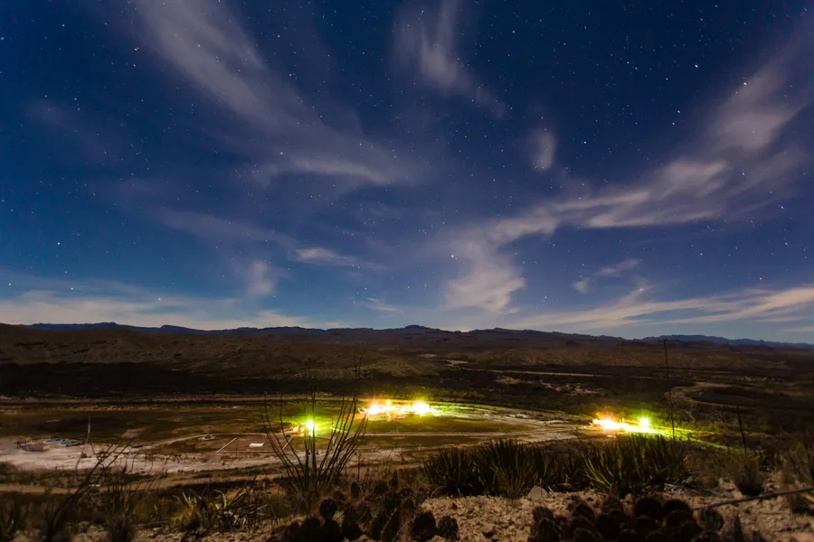 Plant life is abundant at the Indian Hot Springs Ranch, despite common misconceptions about the Chihuahuan Desert. Hearty, drought-resistant plant species such as lechuguilla, ocotillo, yucca, prickly pear, peyote, creosote, and greasewood thrive here. In the lower elevations, mesquite and other woody plants thrive, especially near the river.