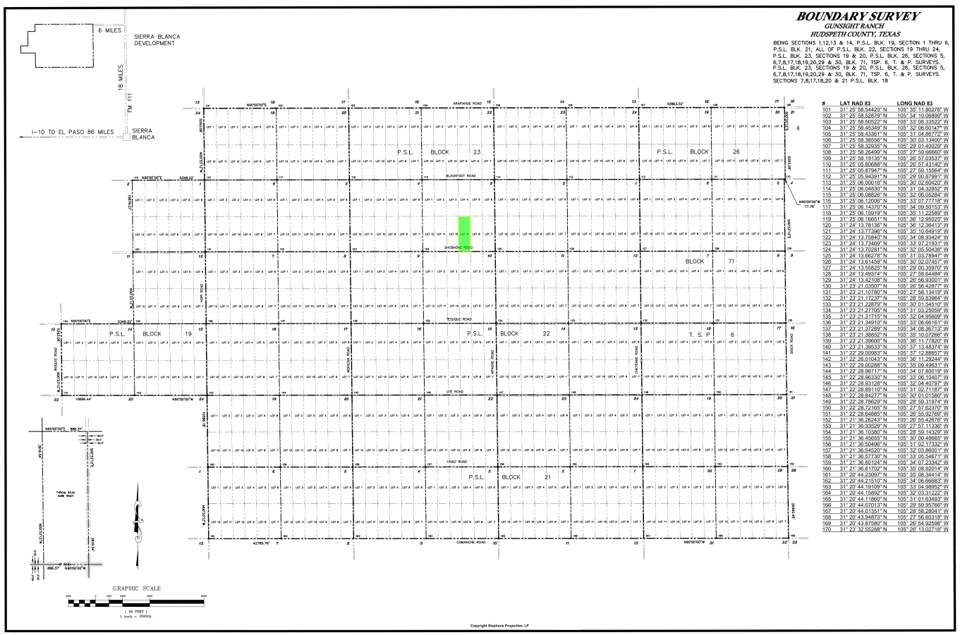 Research Parcel InformationFrom Interstate 10 and the county seat of Sierra Blanca, you will drive north on paved FM Road 1111 for about 18 miles to 31.418222 -105.349375.