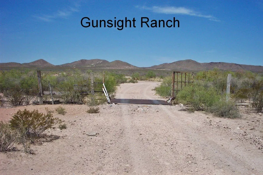 At the Gunsight Ranch sign, you will turn left and follow the maintained gravel road straight west for 6 miles to the cattle guard entrance gate to the Gunsight Ranch.