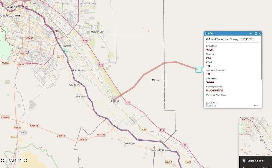 Offering a stunning mountain view and rich in wildlife, this property is conveniently close to Fort Hancock and Sierra Blanca, providing ample amenities. (Owner has a total of 40 acres for sale, 4 lots each 10 acres) (Lot 12,13,18, & 23). The land is ideal for recreational activities such as hiking, camping, and horse riding. Currently, the land is unimproved with no designated zoning for construction, and utilities are not present. However, future development has the potential to significantly enhance the property's value. The property is conveniently located approximately an hour's drive from El Paso. All images represent the surrounding area of the property. The pin location provided is an approximate indicator of the actual site. For more information call Hudspeth County.