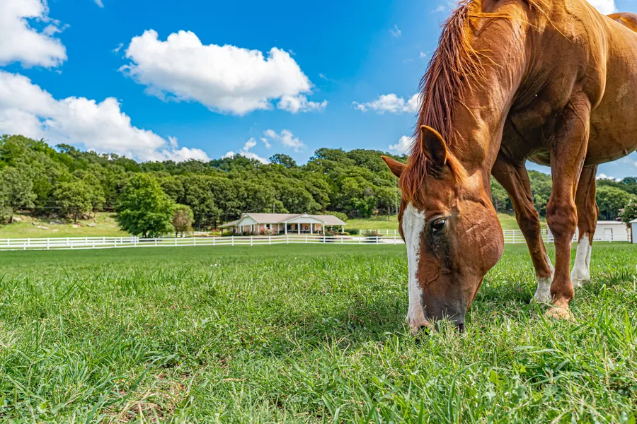 The Headquarters is located at the far North of the ranch offering a Beautiful updated 3 bed 2 bath 2,317 sq ft home originally built in 1983 with a nice addition in 1991. There is a 30x20 attached carport with attic storage. All exterior surfaces not in brick are covered in steel including the shake style metal roof, includes a lifetime warranty on the roof and the last roof youll ever need. The large living room offers a professional masonry, flue chimney that will accommodate a wood burning stove or propane. The upgraded kitchen offers all stainless steel appliances, custom cabinets and granite countertops.