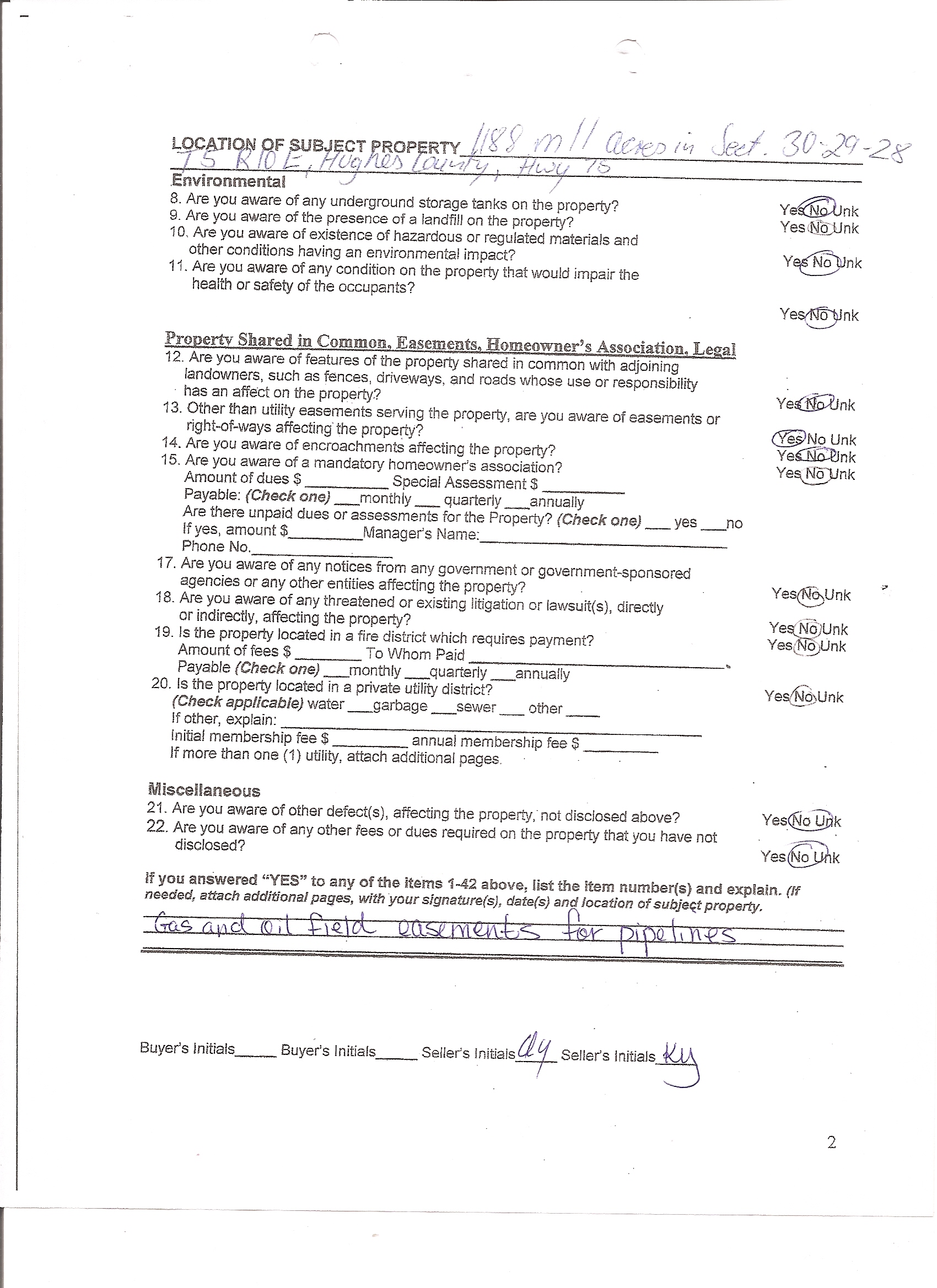There are two gas well pads on the premises. The Owner is getting $3,650.- per year to let them use the road! Then in the back side of the timber, in about a 40 acre parcel are some small oil pump station pipes. No activity has been on these over the last few years. Beside the usual utility easement for water & electricity, there is a pipe line easement as well.
