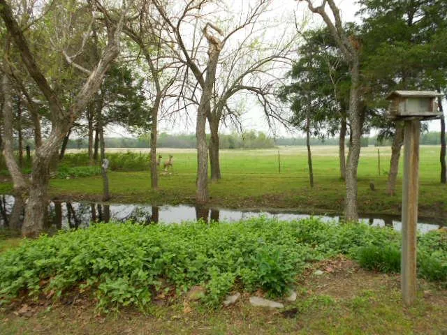 As you enter the gated entrance you will see several pastures divided by natural tree lines and a long drive-way to the house. YOu cannot see the house until you pass the second tree line and pass the first pastures. There are 4 ponds and several other fantastic locations to build more. The USDA Office has several programs to assist Ranchers/Farmers to build ponds and fences. It's like a 50-50 split for the cost and they come out to evaluate the best locations and assist in building the ponds. It is a very great program; many folks are simply not aware that it is available. The house is surrounded by a Ranch-style fence with a 25'x6' covered front porch. YOu can enjoy your morning coffee in a tranquellizing setting watching your cattle and horses graze peacefully. Nobody can see you unless they come up the long driveway around the first 2 timber lines. VERY PRIVATE!!!