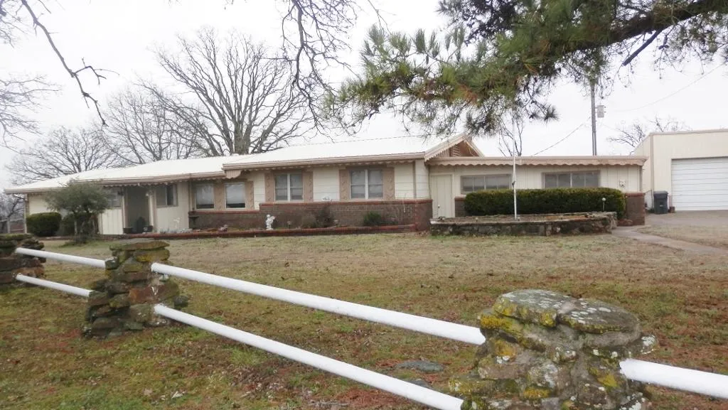 Very large home; 3 bed, 2.5 baths with office an extra room, could be a 5 bedroom home. An abundance of storage, large bedrooms and ample closet space, master bath has full bath and 1/2 bath consisting of shower and sink. Lots of improvements: Kitchen remodel-enlarged, 2 bars, granite counter tops, stainless steel appliances, bamboo flooring, new cabinets, main bath has new sink, toilet and vanity tile, master bath has sinks, toilet, bamboo flooring, small master bath all new (shower, vanity and tile). 2 newer heat pumps (front in 2012, back in 2013) with emergency propane back up, 500 gallon propane tank, newer metal roof and patio cover, old shop renovated with auto garage opener, newer 1200 sq ft insulated shop with heat, 2 overhead doors, wired 220 & 120, lights, 80 gallon air compressor, air plumbed throughout shop, RV/Tractor Cover, newer double pane windows, security system, newer breaker panel and wiring, fruit orchard with apples, peaches, plums and blackberries. Large covered patio, storm shelter and magnificent views overlooking the catfish ponds.
