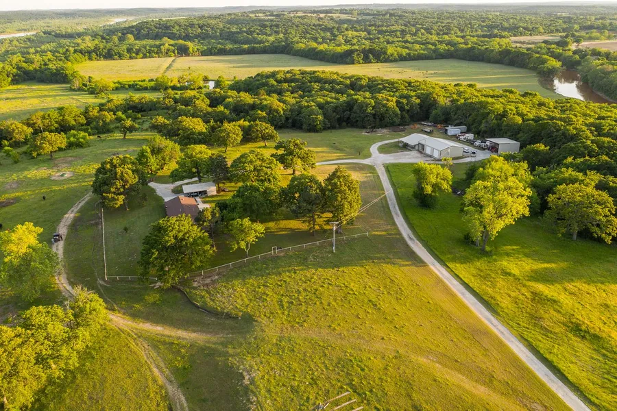 The 322 Acres M/L is located near Holdenville, OK in Hughes Co. Little River borders the west and southern boundary of the property then pours into the South Canadian River which is the east boundary for the ranch. Wrapped in productive bottom land the ranch offers excellent hay fields and pastures for grazing. There are 5 good ponds on the ranch offering excellent water sources for the livestock and wildlife. Wildlife visit the property on a regular basis and travel the wooded hill country along the rivers.