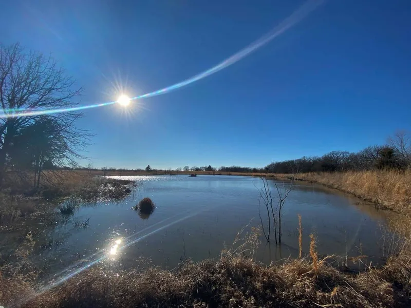 As you follow the drainage to the south, the land slopes up and leads you to a 1.75-acre pond. This pond has a beaver lodge in it, but we did not see any sign of beaver activity on the surrounding trees which lead us to believe that they are no longer in the pond. There were a few ducks on the pond and by all appearances it would be a great place to spend the day fishing during the warmer months. This portion of the ranch is cross fenced and has about 40 open acres of pasture for those who want to run a few head of cows or horses.