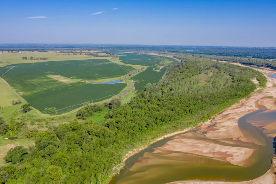 Picturesque, well-maintained farm on a sprawling 911m/l acres bordering the South Canadian River and ready to go in any direction the new owners would like. The farm is set up to be a cattle and farming operation. You have the capabilities to grow your own feed and take your calves up to weight and ready to go to the feed lot all on this one place. Located South of Holdenville in Hughes County, approximately half of its luscious acreage resides under six irrigation pivots fed by a total of five water wells and currently planted in wheat. The dry ground is also tillable and has been planted in previous years in wheat. When current owners had everything in wheat they were able to rotate 1,000 hd of stockers through the farm. Buying the cattle weighing around 450 and shipping them averaging 750. The productive soils offer the opportunity to raise the crop of your choice. Surrounded by excellent up-to-date fencing with steel corner posts. Each pasture flows nicely to the pristine set of cattle pens with scales, sorting alleys and semi load-out. With 1.5 miles of Hwy 48 frontage, this hard-to-find farm promotes a 3 bedroom, 2 bath, and a two car garage modern style home. Encircled by its beautiful acreage, this home features lush carpeting, a modern master bath, and an adaptable upstairs complete with a fireplace and mini kitchenette ideal for a multi-purpose entertainment center. The downstairs kitchen boasts a stunning center island, light grain wood cabinets, and rich natural light. A prized listing by Native Ground Land, this property encompasses rare qualities centric to our organization. Call today to schedule a tour!