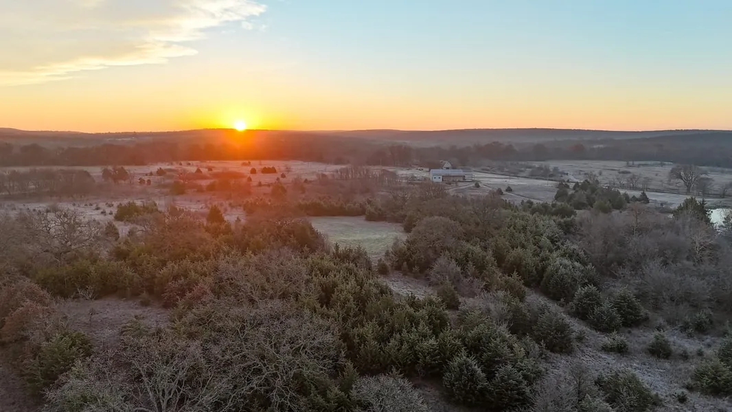 Welcome to 115 +/- acres of prime hunting land in Hughes County, Oklahoma! The first thing you'll notice when pulling through the electric gate is the stunning 3,750-square-foot barndominium. This barndominium features 1,640 square feet of living space, 1,440 square feet of shop space, and a spacious front porch that provides a great spot to watch the sunset. This property is strategically set up for deer hunting with blinds, food plots, and feeders. The two large ponds offer excellent potential for waterfowl hunting and fishing opportunities. A healthy turkey population on the property ensures an exciting spring hunting season. An established trail system throughout the farm makes navigation easy. The property also showcases some beautiful hardwoods along the banks of Greasy Creek, enhancing its natural beauty and wildlife habitat. This property is conveniently located just 25 +/- minut...