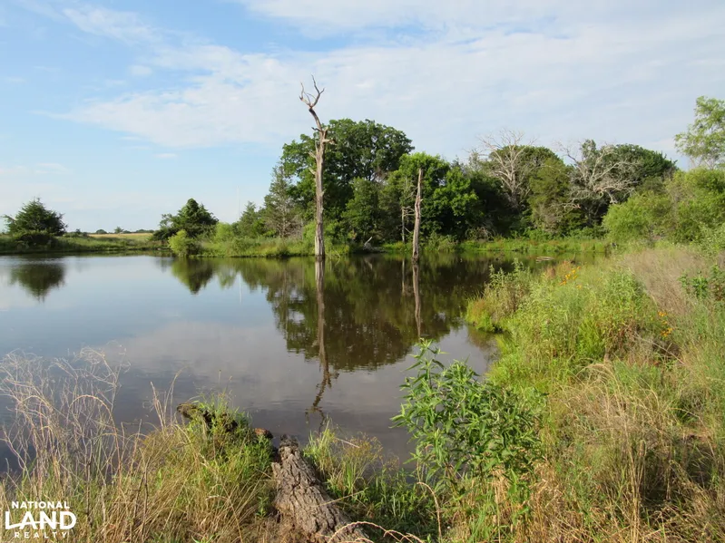 Nestled along Highway 75, this property offers landscape features including expansive highway frontage and a large pond, perfect for reflections or recreational activities. The land boasts native pasture, providing ample space for grazing livestock. Cross-fenced into 3 pastures, the property ensures efficient management of livestock and optimal use of the land's resources.