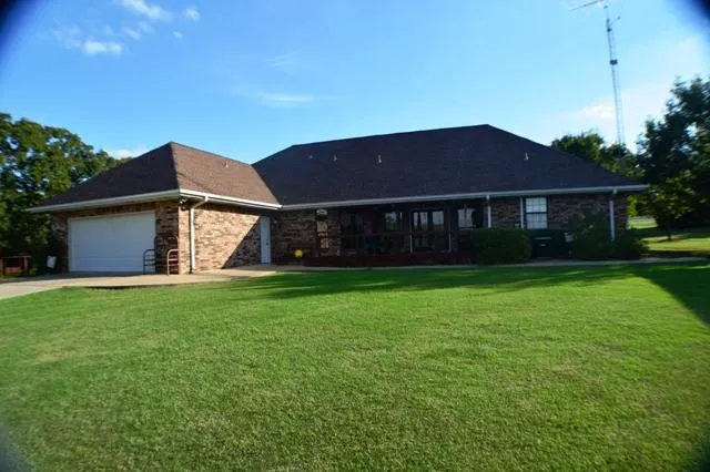 Must see! This gorgeous 3BR/2.5BA brick home. Highway 270 frontage with approx. 3 acres. County home, but less than 2 miles from town. This home features an attached garage, spacious living area, a 2nd formal living area (could be considered a 4th bedroom). Formal dining area, a kitchen w/lots of storage & cabinet space. Huge master bedroom w/ensuite. 2 additional bedrooms at the other end of house w/full jack & Jill bath. A bath near the kitchen. Total electric, rural water, OGE-2 CH&A zones, 2 water heathers. All appliances stay. Outdoor features a very nice detached garage/shop 24/24 w/attached covered patio. A metal shed for lawn equipment storage. A beautiful covered, wood deck off the living room. A place to relax, watch the wildlife, drink your coffee in the morning and a glass of wine in the evening. New roof, 2011.