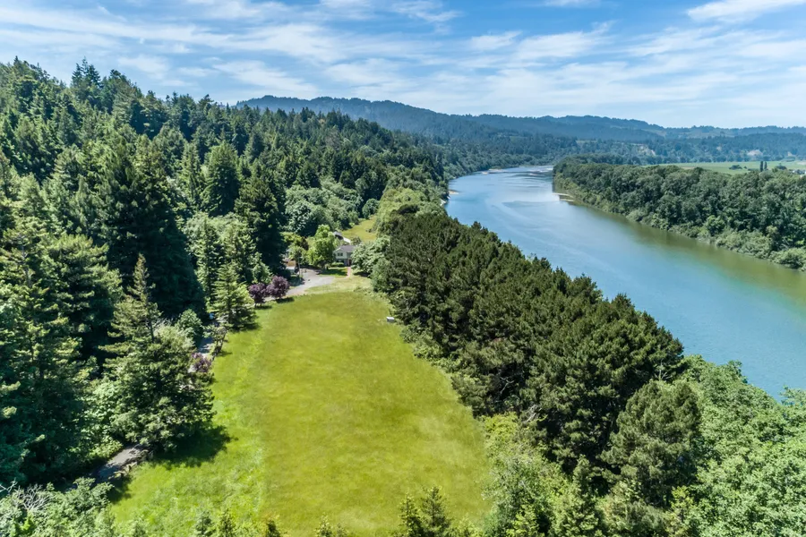 25 Acre Family Estate on the Eel River! Over 3300 square feet of living space with exquisite views of the Eel River. 4 bedrooms, 3 baths, formal entry, and dining room, spacious living room with fireplace and French doors to patio, hardwood floors, butler's pantry, sunny kitchen with granite countertops, Wolf range, ample counter and cabinet space, breakfast nook, large Master Suite, updated bathrooms with walk-in showers, numerous balconies to enjoy the river view, crown molding, built-ins and extensive use of natural wood throughout. Separate one bedroom, one bath guest house, detached garage, plus a separate barn with horse stalls and loft entertaining/game room above. Property is annexed into Rio Dell City limits and has city water. Zoned one-acre minimum and is not in the flood zone. An abundance of timber, pastures, fruit trees, garden areas, flat usable spaces, views, and river frontage.