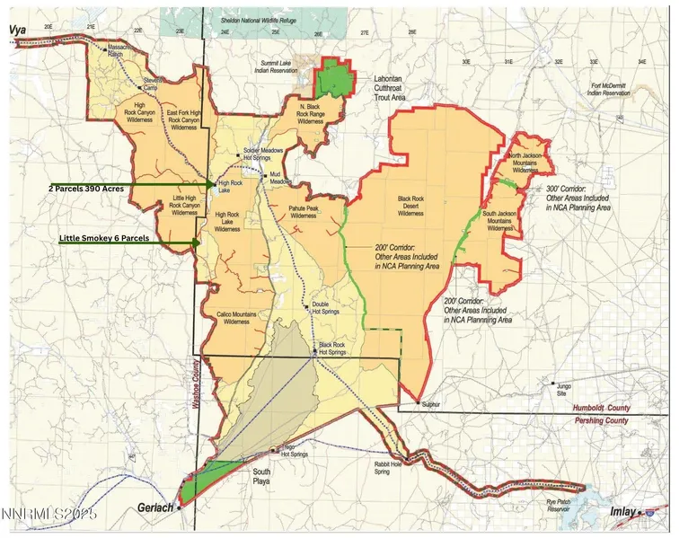 65.62 acres in Little Smokey Valley located at the Southern end of the High Rock Canyon Area. This parcel offers live water that flows year-round and receives tail water fed from an upper parcel. There is a desirable building site which offers panoramic views of the Wilderness area to the North. Good access off of High Rock Rd and 1 hour to Gerlach, Nevada. Parcel is one of 6 private in-holdings on this end of the valley and has federally protected land on two sides. Natural spring water is a rarity in Northern Nevada and substantially adds to the quality and value of the property. Property is off-grid and offers amazing views, wide open spaces, and spectacular night skies. The owner has begun developing the pond and Spring area and has roughed in a wonderful building pad. The region offers abundant wildlife, hot springs, petrified wood, hiking, and plenty of back-country riding or driving. Cell coverage and internet are available with a satellite system. The owner may carry paper with mutually agreed upon terms.