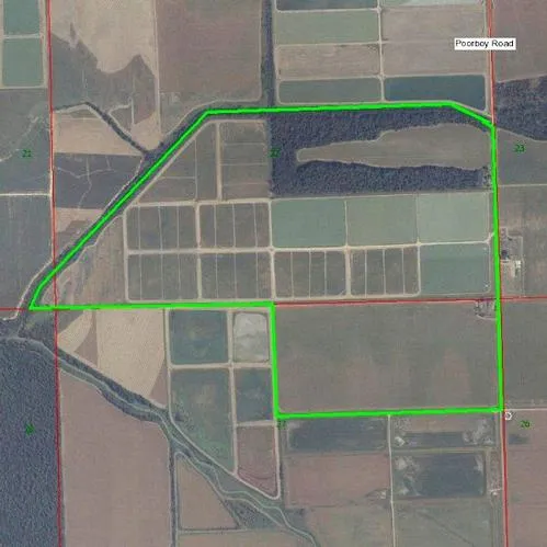 POOR BOY consists of 305 acres located in Sections 22 & 27, T15N, R4W on Poor Boy Road west of Belzoni, MS. 80 acres of precision leveled rice (60 ac of rice base and 17 ac of cotton base) ground with wells and drainage structures in place, 19.5 acre ( 11 ac soybean base) field ideal for a sunflower field or any other crop, 28.5 acres of woods, 177 ac of land formed ponds with no base. All irrigated. This is an excellent area of Humphreys County for ducks, doves and geese. This property will produce farm income of approximately $20,000 annually.