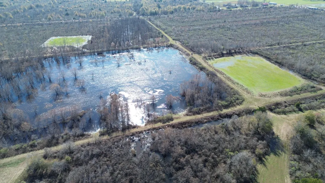 4-acre natural slough with 1 metal skid duck blind (included with sale) is adjacent to the duck hole and can also be pumped with the electric well.