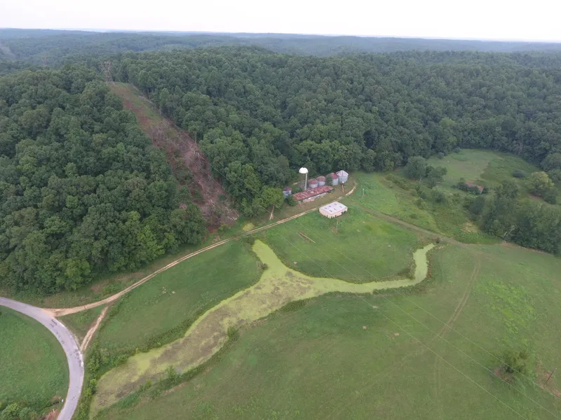 Beautiful 132.6 acre farm with approx. 23 acres open pasture with balance in marketable timber. Land features 2 large springs, spring fed pond, 6 grain bins, 1 silo, 40'x60' metal I-beam construction building w/ concrete floor, 2-16' roll up shop doors & electricity. Old farm barn w/ concrete floor. Land has multiple building sites with good road frontage. This unique property also has excellent hunting potential, abundant with deer and wild turkey! A must see!