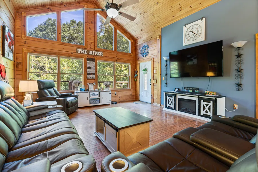LOG HOME with COZY COTTAGE - Perfect for Multi-Generational Living! The recently finished Basement includes 3 Bedrooms & a Rec Room to make this a 5/6 Bedroom Home! Rustic Charm with Modern Upgrades for Comfort & Functionality. Just a Few Miles to the Tennessee River and One Hour from Nashville.This Private 1.36 ac is Set off the main road w/Fully Fenced Backyard Oasis, Covered Pergola on large deck *A Family Home w/ Room to Grow or a Peaceful Getaway w/ the Bonus of Rental Income, this Unique Log Home w/Tiny House (in-law house, guest cottage, rental, man cave, or office) offers Plenty of Options. The combination of Ample Living Space, outdoor Amenities, and Potential Rental Income make this such a Unique Property! *1 car garage*Whole house generator (2022) *Surveillance cameras *Tankless water heater*Heated dog pen *The 14x24 Tiny Cottage built in 2022 is complete w/Appliances,Stackabl...