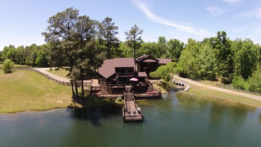 Lakeside retreat on 19 park-like. The main house offers a multi tiered deck, maximizing the view of the 5 acre private lake. Partially finished apartment over 2 car garage. Guest house wt 6 bedrooms. BBQ pavilion wt private dock and large wood fireplace.