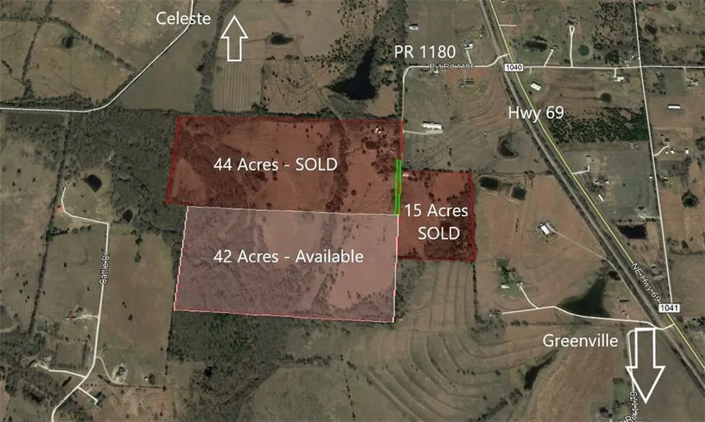Gorgeous 40 acre tract of rolling hills off Hwy 69 at a dead-end Private Road. If you want privacy,THIS IS IT! Abundant wild life and a great mix of pasture, trees, creek and rolling hills. Water and Electric are next door to the property. Entry to the property is a dedicated easement from the north. This property is the south side of the original 84 lot survey. 30 minute to everything, right in the middle of nowhere. Celeste ISD schools and Hickory Creek Water SUD. Currently Ag Exempt and used for hunting and recreation. New survey will show property is 40-42 acres. Parcel ID is 24703.