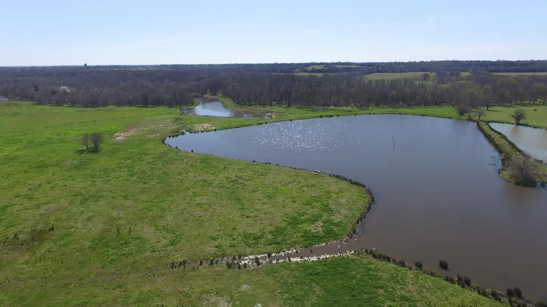A nearly four acre lake provides fishing opportunities and added beauty for a building site. The Middle Sulphur River flows along the southern border of the property and an oxbow lake adds additional water. Utilities are already in place.