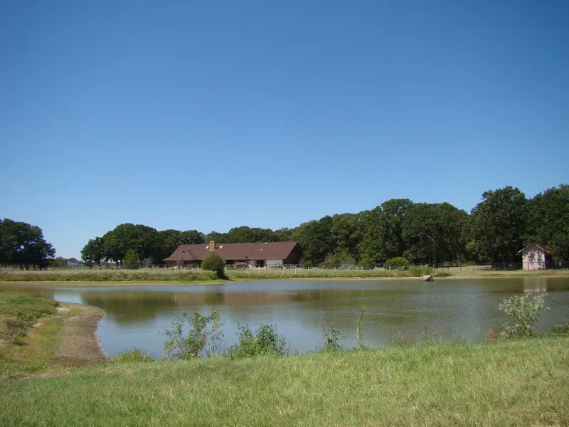 SECULDED AND TRANQUIL ACREAGE,SITS AT THE END OF A COUNTY ROAD. HOUSE SITS BACK 1/4 MILE AND CAN'T BE SEEN FROM THE ROAD. TREED LINED DRIVEWAY TO PROPERTY. 6 PASTURES , RECEIVED 2 CUTTINGS THUS FAR THIS YEAR. GREAT HAY. LOTS OF TREES, THIS PROPERTY HAS IT ALL. LUSH PASTURES AND PICTURESQUE TREES.5 BEDROOM HOUSE WITH 4 FULL BATHS AND A HALF BATH. LARGE LIVING AREA WITH SKY LIGHTS AND GLASS DOOR TO VIEW YOUR LARGE STOCKED FILLED LAKE. OPEN KITCHEN AREA WITH BREAKFAST BAR AND BUILT IN KITCHEN TABLE.ALL APPLIANCES STAY. KITCHEN ALSO HAS GREAT VIEWS. COVERED BACK PORCH WITH CEILING FANS AND VIEW TO LAKE AND PASTURES. SHADE TREES AROUND HOUSE. OVERSIZED MASTER SUITE WITH LARGE MASTER SUITE BATH.CEDAR CLOSET IN MASTER. STUDY OFF OF THE KITCHEN, LARGE PANTRY AREA WITH BUILTINS. SEWING ROOM .INCREDIBLE VIEWS FROM MASTER AND ACCESS TO COVERED BACK PORCH. FRONT PORCH ALSO COVERED WITH BEAUTIFUL VIEWS. SEPARATE ATTACHED GUEST APARTMENT WITH 3 BEDROOMS 1 BATH,KITCHEN LARGE LIVING AREA.4 CAR GARAGE, WITH WORK BENCH AND CABINETS.EXCELLENT SANDY SOIL.SOME PIPE FENCING.6 STALL HORSE BARN WITH TURNOUTS,TACK ROOM,HAY ROOM,HAY LOFT,ELECTRIC,WATER.60X40 METAL HAY STORAGE WITH RV HOOKUPS AND TRACTOR LEAN TO, EQUIPMENT SHED, 3 LOAFING SHEDS.CHICKEN HOUSE.LARGE STOCKED LAKE.
