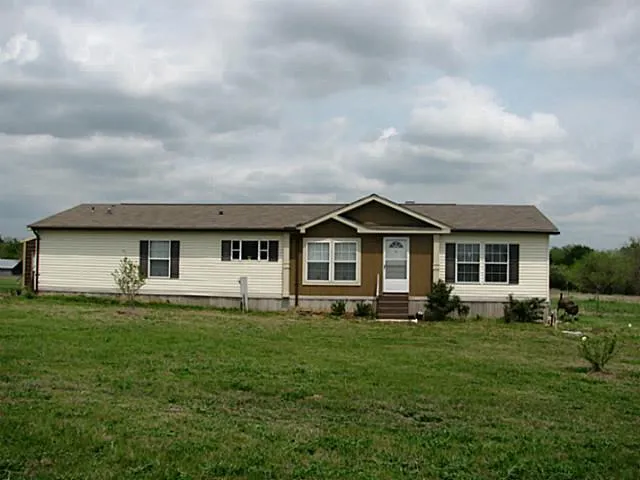 Charming secluded 4-2-1 manufactured home built in 2008 by Schultz with 5.941 acres of green pasture, trees, pond and barn. Huge country kitchen with arched Austin stone over stove, large island, black kitchen applncs, dining area. Austin stone WBFP, wired for sound, office space, walk-in closets, lots of storage, 14 master closet, grand garden tub, separate shower, double, sinks, wall&floors: R-11, attic R-21. 50 gal WH. Garage. MUCH MORE