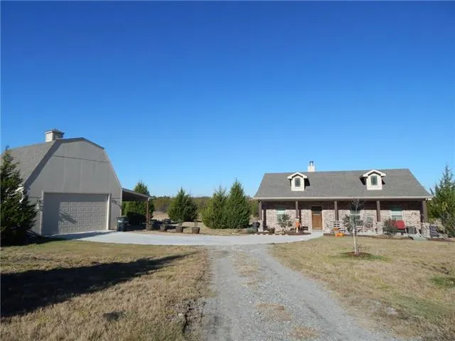 There is so much to love about this 3 bedroom, 2 bath home that sits on almost 35 acres. Open-concept kitchen has granite countertops, tile backsplash, and gorgeous cabinets. Living room has a vaulted ceiling and large stone fireplace. Master bedroom has large walk-in closet. Outside there is a 2-car garage with an overhang to store farm equipment. Deck overlooks backyard and well-maintained pasture. Gated entry and great landscaping around home.