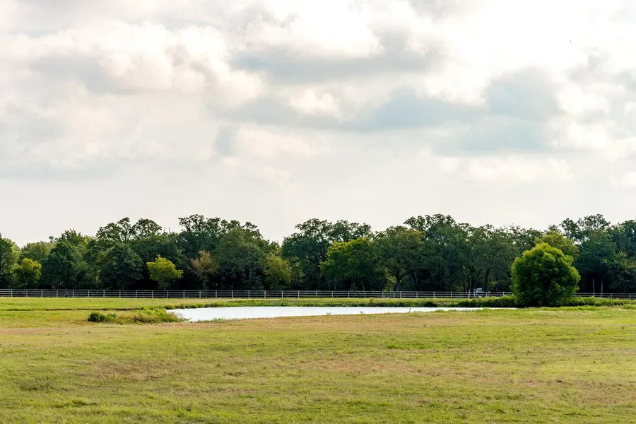 TRACT 4: 49.2 acres with 5 furlong race track (one of only two privately owned LICENSED training facilities in the State of Texas) along with race track equipment building, 2 oversized loafing sheds with feed rooms and extended feeders, one half acre stock pond and one quarter acre stock pond.