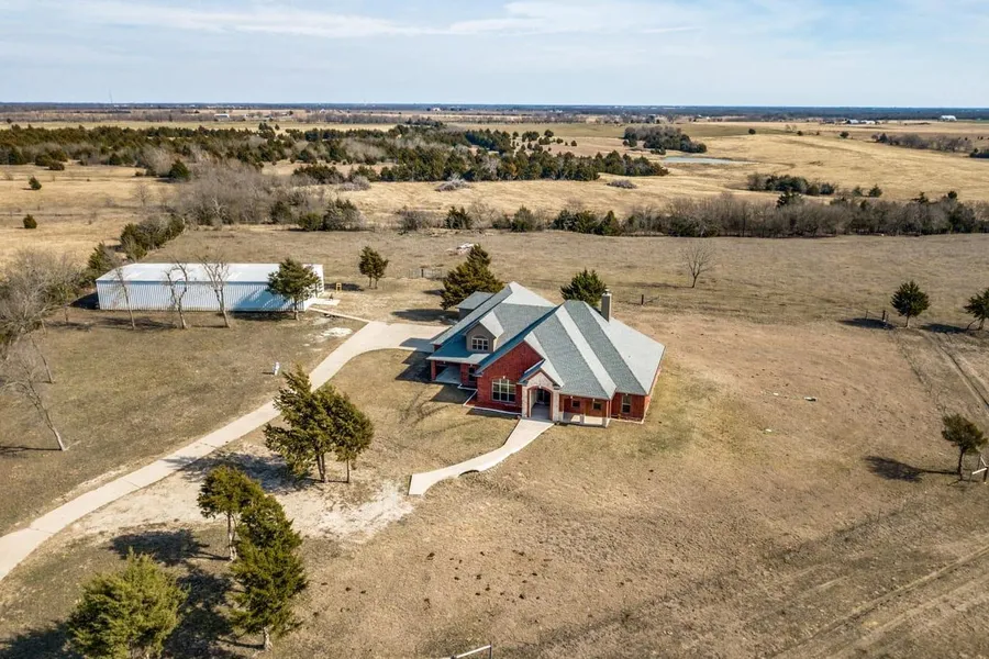 Ridley Ranch features an extraordinary new custom-built home overlooking 76 acres of rolling pasture with a 4-acre lake and multiple smaller ponds. Situated at the end of a 1/4 mile concrete driveway is the 4,169 square foot house and 40x100 shop. The house is comprised of 4 bedrooms, 5 bathrooms, dining room, multiple living areas, media room, large dine in gourmet kitchen, master bathroom with his and her closets, dual shower, soaker tub, and a safe room accessed through the closet, oversized laundry room, 3 car garage, 3 covered porches, and a geo-thermal heating and cooling system.