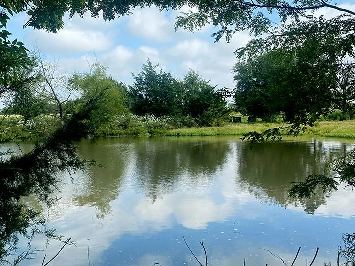 There are seven ponds and two creeks. The terrain is rolling with scattered trees and heavily wooded thickets. Whitetail deer, ducks, hogs, dove, turkey, bass and catfish round out this productive ecosystem.