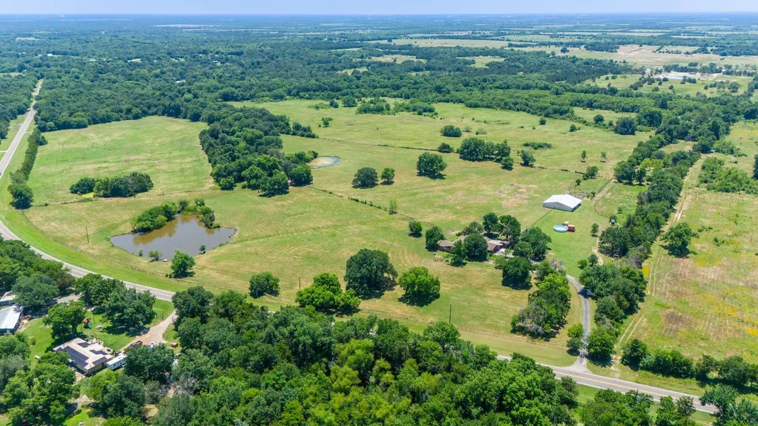 71.5 Acres of Beautiful AG EXEMPT Ranch property, large scattered Oak trees, fenced and crossed fenced with pipe rail and barb wire, 3 Ponds, 60 X 60 Barn with Workshop, water and electric, Centrally located between Greenville, Commerce, Hwy 380, and just a few miles from the New Collin County outer loop! Enter property thru the electric Iron Gate to the well maintained, New Roof and gutters, 3 bedroom, 2 bath Ranch style home, Kitchen has granite counter tops, large island, breakfast area, wood burning stove, and open to sunroom with picture frame windows! Large Living area with wood burning fireplace, vaulted beamed ceiling! Huge Primary Bedroom with Ensuite and 2 more guest rooms and bath. Outside, enjoy taking a refreshing dip in this 2022 Above Ground swimming pool with deck or enjoy gardening in the backyard greenhouse! Property also perfect for a Country Subdivision with approximately 1200 feet of Road Frontage, several gorgeous building sites!